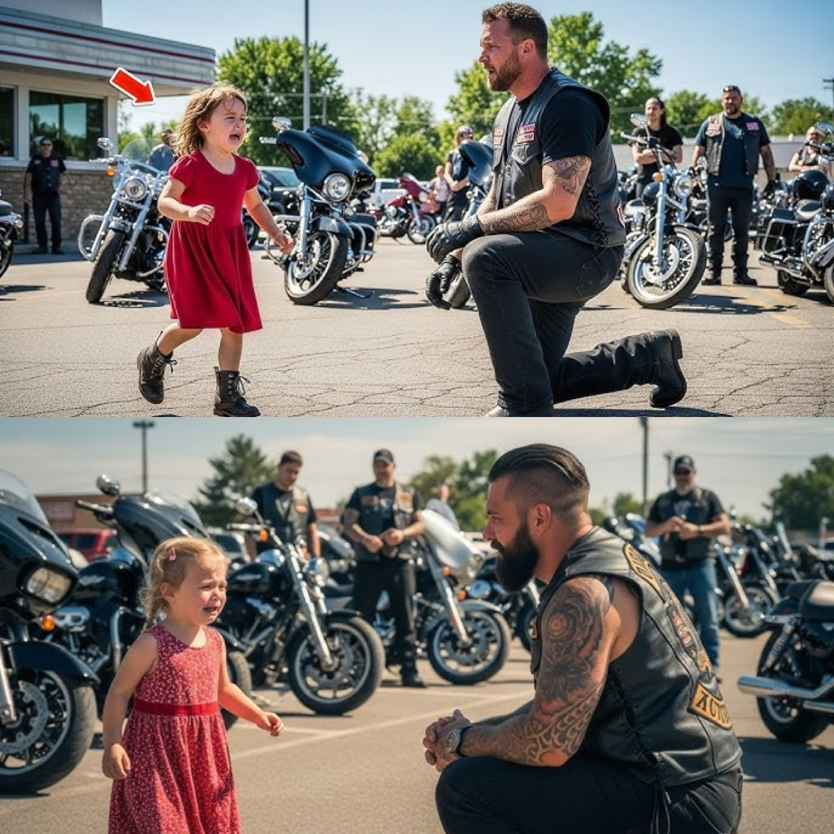 🏍️💔Une petite fille a couru vers les motards en criant : « Ils frappent ma mère ! » — Ce que les motards ont fait a laissé tout le monde sous le choc