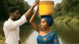 Un jour, alors qu’elle revenait de la rivière, écrasée par le poids de ses seaux d’eau, elle aperçut une vieille femme frêle et misérable, assise au bord du chemin. Tout le monde l’ignorait, mais Camsy, malgré sa propre fatigue et sa tristesse, s’est arrêtée. Elle a offert à la vieille femme un peu de son eau et lui a parlé avec douceur. Touchée par cette bonté inattendue, la vieille femme lui a fait un cadeau extraordinaire : un pagne d’une qualité rare et un collier de perles de corail. “N’abandonne pas tes rêves, mon enfant. Va à ce concours”, lui a-t-elle murmuré. Malheureusement, Verro a découvert les précieux cadeaux, les a volés et les a cachés, anéantissant une fois de plus les espoirs de sa belle-fille.