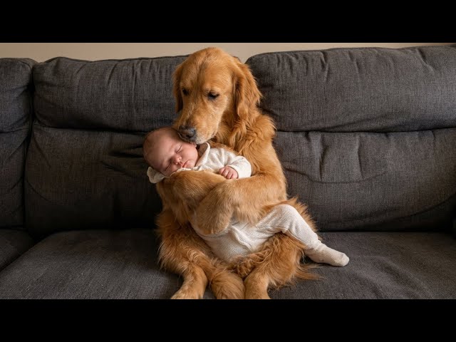 Une maman a laissé son bébé dans les bras d’un golden retriever – mais personne ne s’attendait à ce qu’il se comporte comme un humain.