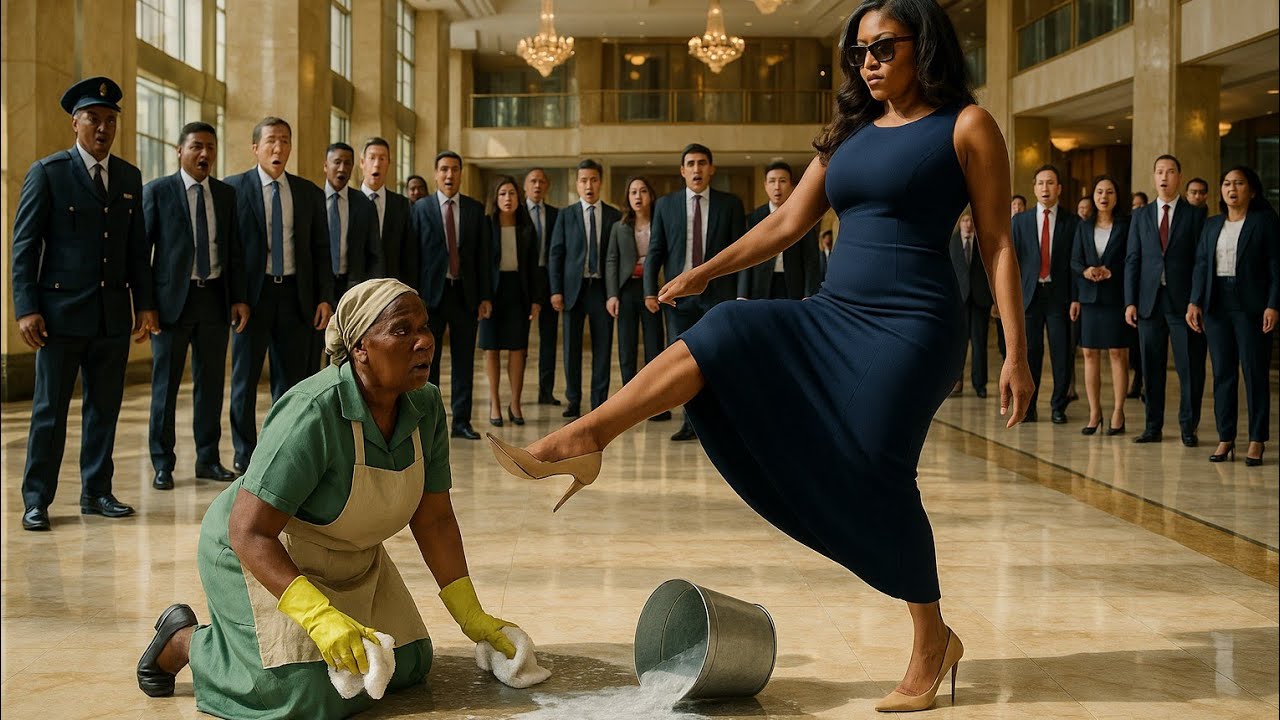 Mais la vieille femme ne montra aucune colère. Elle se contenta de continuer son travail, ses gestes calmes et mesurés semblant irriter Vanessa encore plus. Et soudain, sans avertissement, Vanessa leva la jambe et donna un violent coup de pied à la femme. Le chiffon glissa de ses mains, le seau bascula, répandant encore plus d’eau savonneuse sur le sol. La femme âgée haleta légèrement, tenant sa taille, mais resta debout, digne et imperturbable.