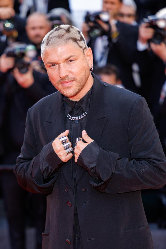 Vainqueur de la saison 7 du télé-crochet culte de TF1, Quentin Mosimann a depuis opéré une impressionnante reconversion. Aujourd’hui DJ de renommée internationale, il cumule des millions de vues sur les réseaux sociaux, où il propose régulièrement de « produire le track des rêves » pour des artistes en tout genre. Pour sa première apparition au Festival de Cannes, l’artiste de 37 ans a fait une entrée remarquée. Vêtu entièrement de noir, arborant plusieurs bagues argentées, les cheveux blonds peroxydés parsemés de touches sombres, il affichait un look à la fois audacieux et sophistiqué, parfaitement dans l’air du temps.
