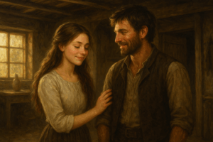 Les semaines passèrent, rythmées par le travail acharné du paysan et la petite aide qu’Anna pouvait offrir. Chaque matin, Thomas se levait avant l’aube pour labourer ses champs, et chaque soir, ses épaules étaient lourdes de fatigue. Anna, sans jamais se plaindre, accomplissait sa tâche avec diligence, allant du soin des animaux à la cuisine, en passant par le nettoyage de la petite maison.