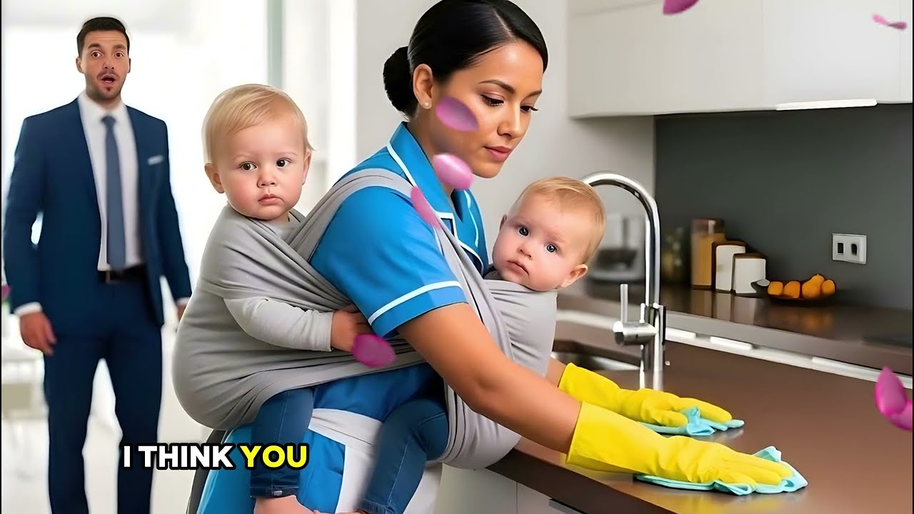 Elena, sa gouvernante, était penchée sur le plan de travail, gantée de jaune, son uniforme bleu impeccable. Mais contre elle, attachés dans une écharpe grise, deux bébés aux cheveux pâles et aux yeux grands ouverts semblaient s’accrocher à elle comme à une bouée de sauvetage.