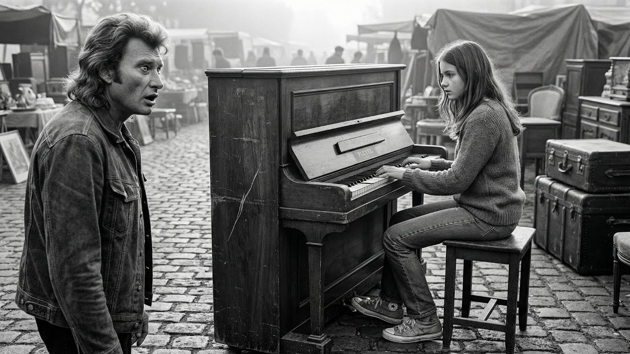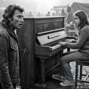 Johnny Hallyday marchait dans le marché Opus de Saint-Ouen lorsqu’il s’arrêta net. Là, assise sur les pavés à côté d’un piano Playel de 1952, se trouvait une jeune fille de 16 ans avec une pancarte en carton où était écrit “150 francs”. Mais ce n’était pas le prix qui fit battre le cœur de Johnny, c’était le piano lui-même. Il le reconnut instantanément, la rayure sur le côté gauche, les touches légèrement jaunies, le pupitre décoloré. C’était le piano sur lequel il avait appris ses premiers accords des années plus tôt. Et la femme qui le lui avait appris, la femme qui lui avait sauvé la vie quand personne d’autre ne s’en souciait, n’avait jamais rien demandé en retour. Ce que Johnny découvrit dans les 25 minutes suivantes allait changer non seulement la vie de cette jeune fille, mais révéler enfin une dette dont il ignorait l’existence.