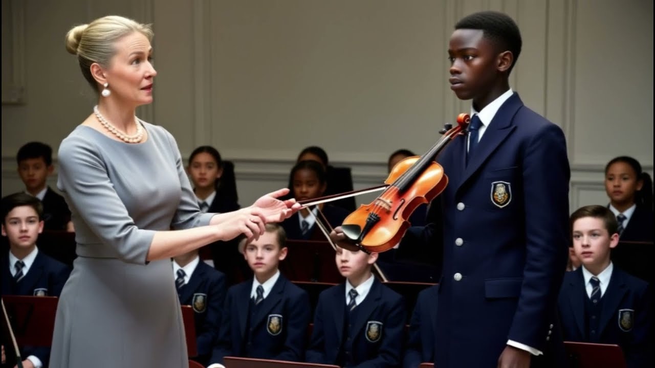« Peut-être que tu voudrais nous faire une démonstration, » dit-elle en désignant les étagères d’instruments. « Violon ? Peut-être. » Sa voix était pleine de condescendance. Daniel ne répondit pas. « L’éducation nécessite du courage, » insista-t-elle. « À moins que tu préfères te transférer dans une classe moins exigeante. » Il se leva lentement, s’approcha du devant et prit le violon qu’elle lui tendait.
