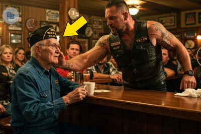 Un écusson délavé de l’armée américaine était cousu sur l’épaule de sa veste, et à côté de son assiette se trouvait une casquette bleu marine brodée d’or. Vétéran du Vietnam. La voix du motard s’éleva. Je dis : « Tu es assis à ma place, espèce de fossile. Bouge avant que je te bouge. » L’homme ne broncha pas. Il leva simplement les yeux, les yeux fatigués, et dit : « Mon fils, j’ai survécu à des choses que tu ne comprendrais pas, mais si tu as tant besoin de ta place, voilà. » Et c’est alors que cela arriva. Une claque vive et franche atterrit sur la joue du vieil homme. Sa casquette tomba de la table. Son café se renversa. La serveuse haleta. Une mère à proximité couvrit les yeux de son enfant. La salle fut choquée. Non seulement par la gifle, mais aussi par le silence qui suivit. Personne ne bougea. Personne n’arrêta le motard qui affichait un sourire narquois et murmurait : « J’aurais dû rester dans le passé, soldat. » Mais l’homme ne cria pas, ne riposta pas.